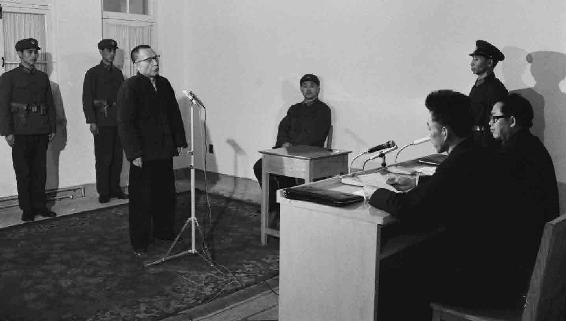 1980年11月10日,司法人员向张春桥宣读最高人民检察院特别检察厅起诉书副本。(新华社记者齐铁砚 摄)
