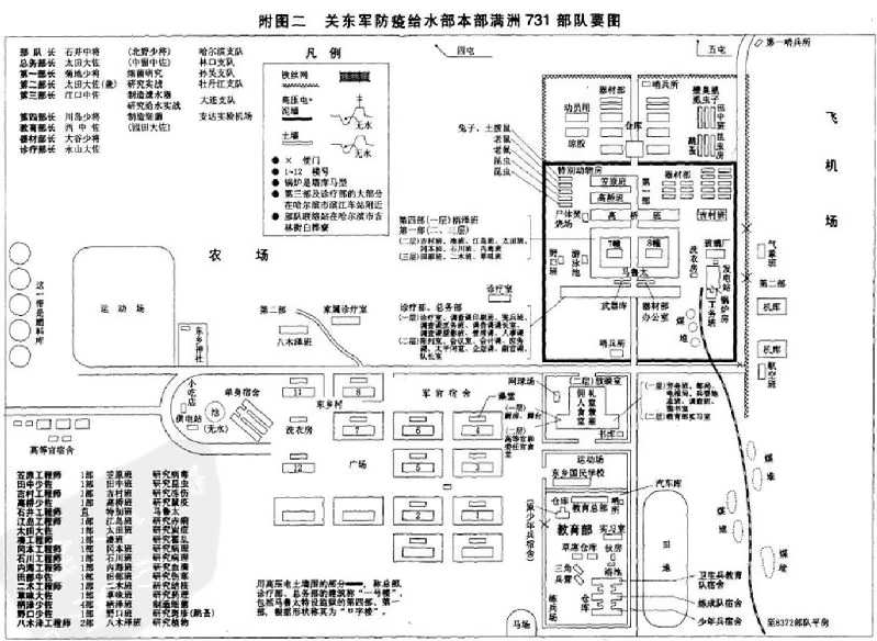 > 附图二 关东军防御给水部本部满洲731部队要图