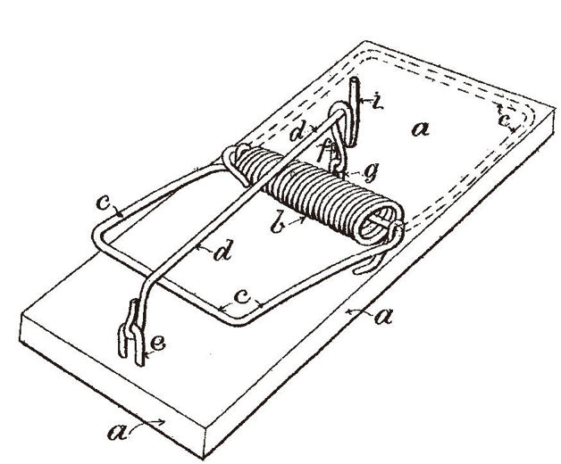 英国里兹有一位年轻的五金商,名叫詹姆斯·亨利·阿特金森。1897年,他拿起一块小木板,一点硬铅丝,没有更多别的东西,制作了历史上最伟大的夹子之一:捕鼠夹。这是19世纪末发明的几样有用的物品之一 ——还有许多别的,其中有回形针、拉链和安全别针——从一开始就近乎完美,在之后的几十年里几乎没有改进。阿特金森以1000英镑的价钱卖掉了他的专利,这在当时是相当大的一笔款子。然后,他接着又去发明别的东西,但没有发明出任何能使他挣到更多钱或更流芳百世的东西。