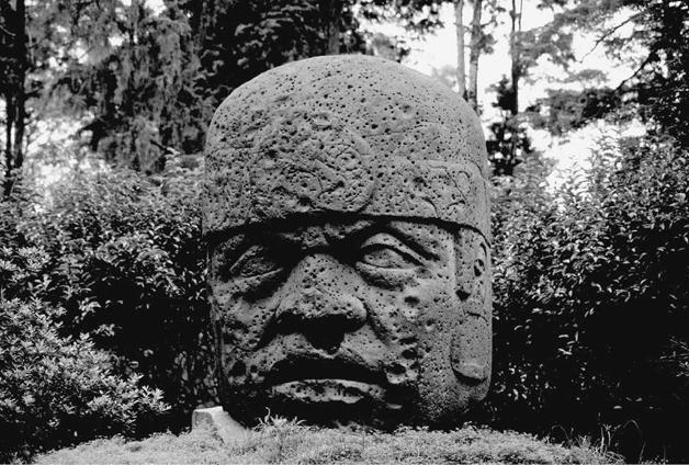 奥尔梅克人留下了一些几近不朽的自画像:以大块玄武岩雕刻的巨型头像,一些石块超过 18000 公斤,它们来自 59 千米外的采石场。现在已经发现这类头像 17 个,其年代可能介于公元前 1400 年到公元前 400 年之间(参见图 6.5)。