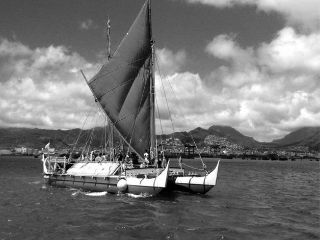 Hōkūle’a 是传统的波利尼西亚双体独木舟复制品,由波利尼西亚航海协会于 1975 年建造。1976 年,Hōkūle’a 用波利尼西亚的传统航海技术航行到塔希提岛,这是它在太平洋进行的十次重要航行的第一次