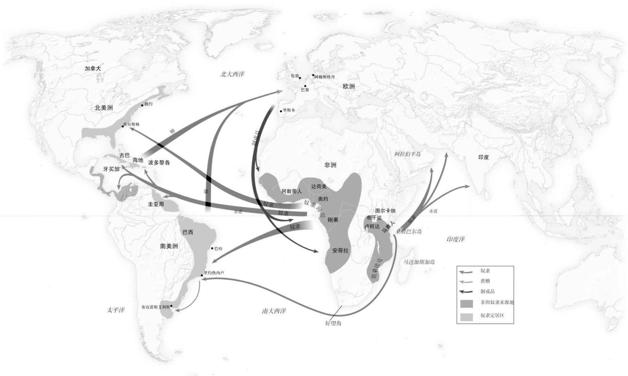 一张比较庞大的贸易网络连接着非洲、西欧和美洲,交换着人口、工业品和农产品,而奴隶贸易就是这个网络的组成部分