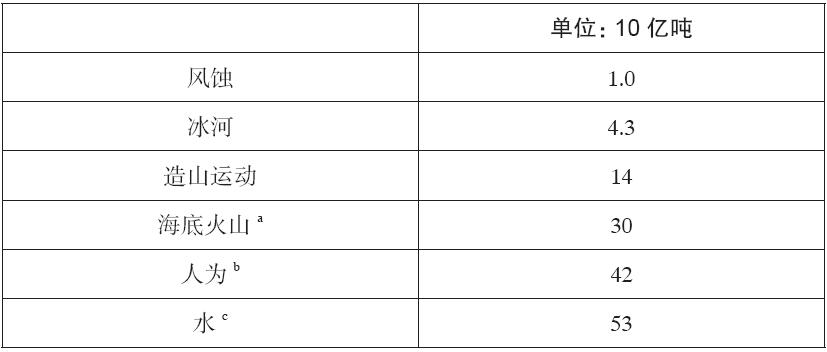 表1.1 平均每年岩石与土壤被移动数量