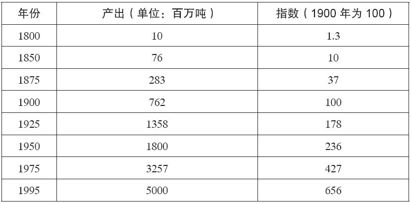 表1.2 1850—1995年全球煤炭产出