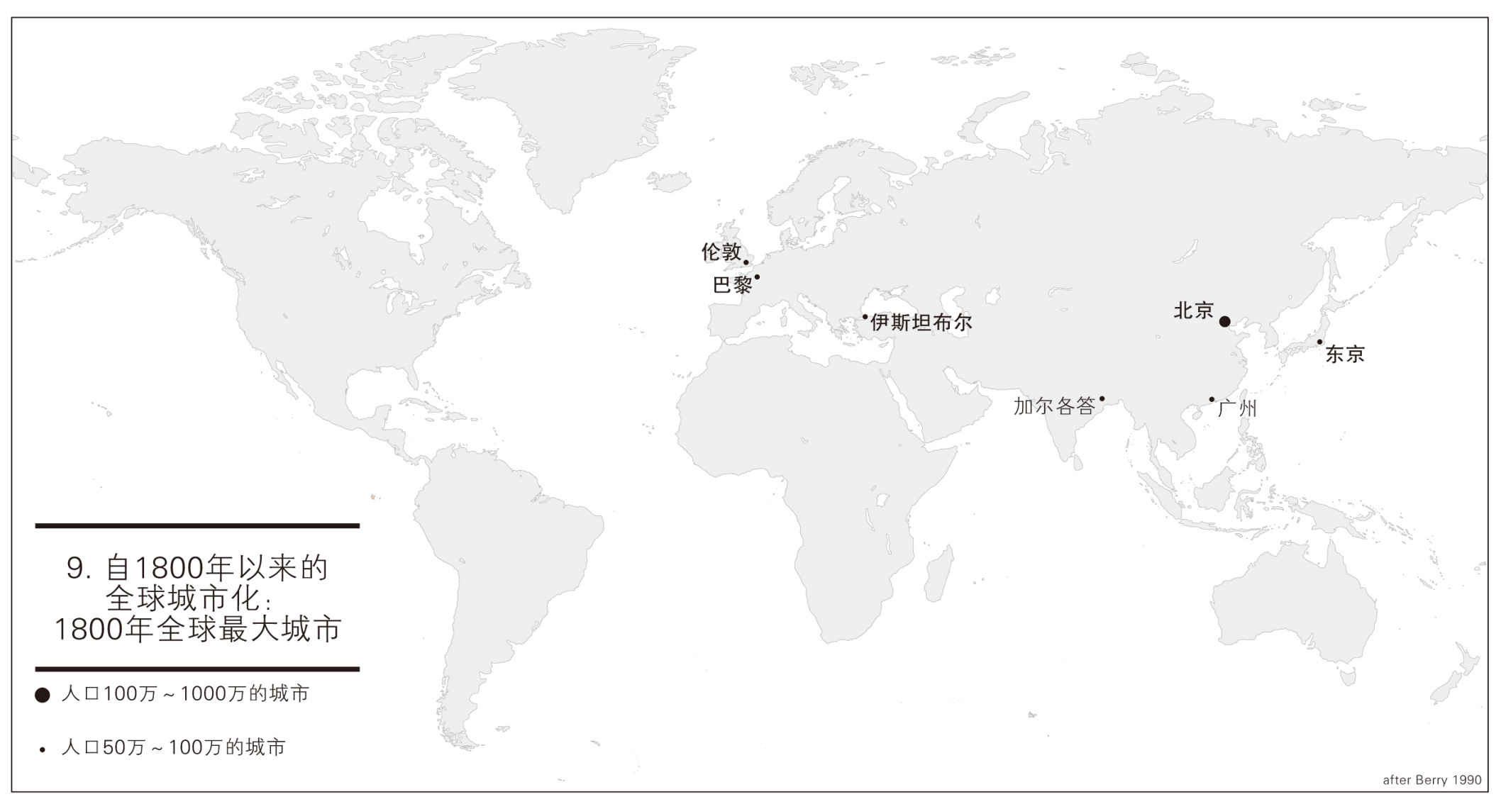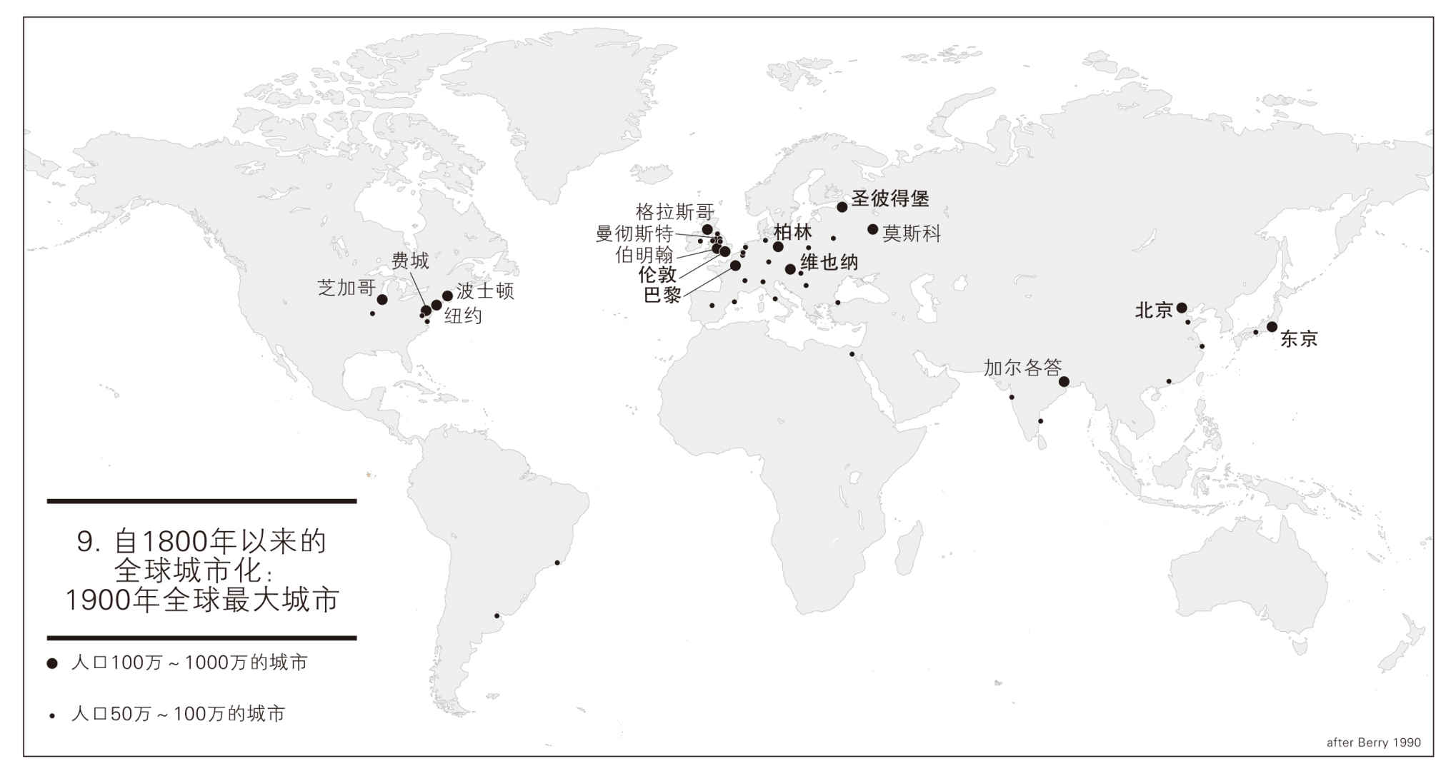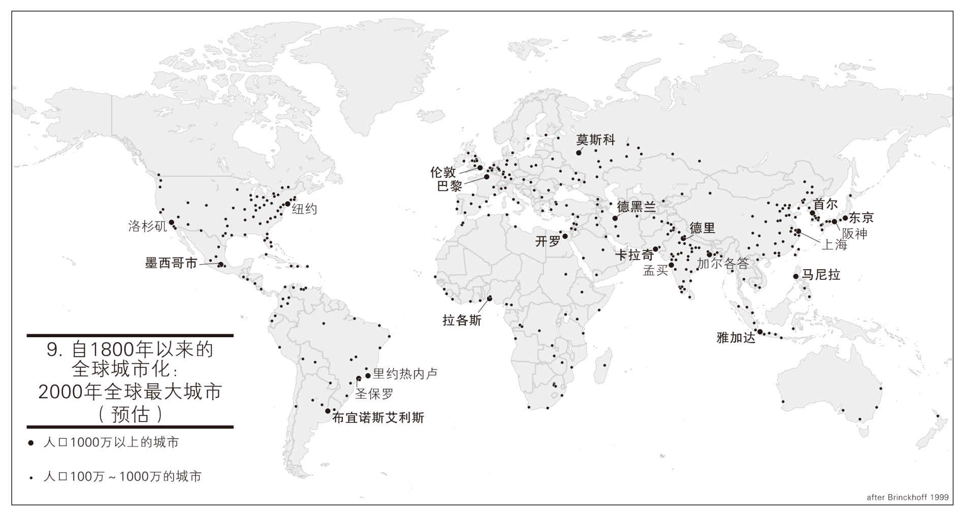 [36]Douglas 1994提供了1990年的数字。我计算1900年数字的依据是,城市人口占全球人口的1/3,大城市人口占1/4,且1900年人口密度略高于1990年。