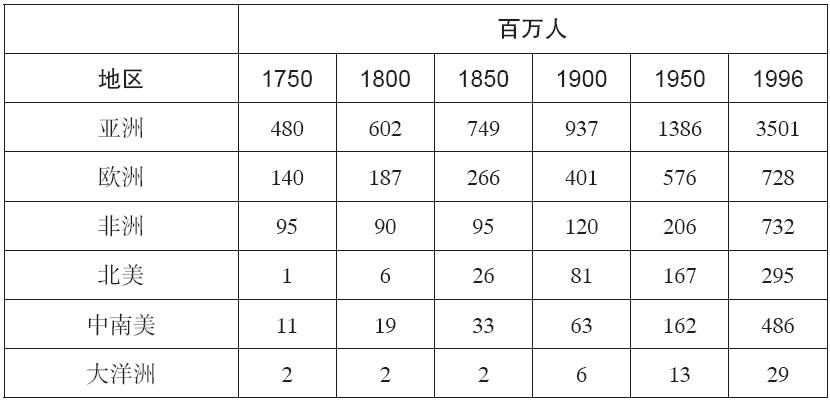 注:非洲1900年以前为推测数字,亚洲也是,但比非洲略好;McEvedy and Jones 1978所提供的非洲数字略低,亚洲则略高。