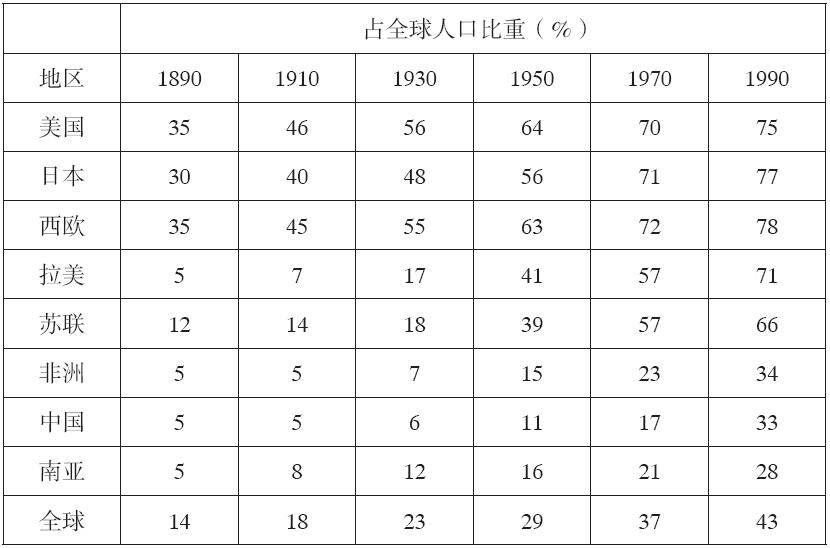 [3]如果不以地区呈现,而以宗教或人均国民生产总值(GNP)区分,数据就会有所不同。然而因为20世纪中这些指数已大幅改变,因此这样做并不实际。