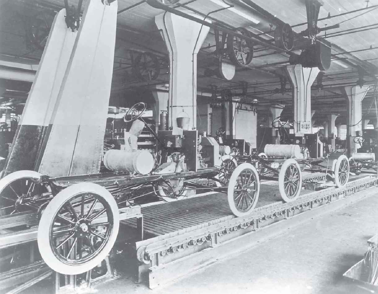 图为全球汽车制造中心底特律市外高地公园(Highland Park)一处福特汽车公司早期装配线,摄于1913年。亨利·福特的装配线,以及他所支付的高额薪资,在美国与全球各地的生产与消费模式引发革命,并带来无数的社会、政治与环境后果