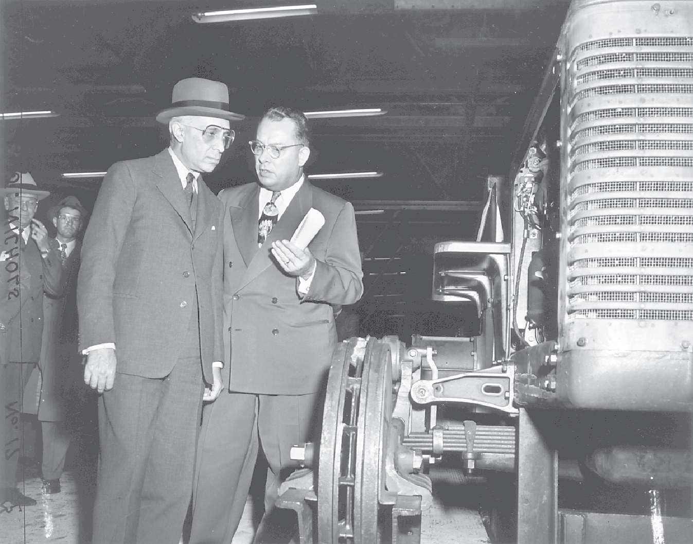 印度第一位总理尼赫鲁,将印度的未来规划为全球经济中的工业发电厂。他希望1947年印度自英国独立后,能借由国家扶植工业化来脱离贫穷与弱势。这股野心延伸到农业,尼赫鲁希望以机械化与大规模灌溉工程带动农业现代化。就像许多刚刚摆脱殖民化的国家领袖,他希望尽快弥补殖民统治时期的损失。图为1949年尼赫鲁在芝加哥考察国际收割机公司(International Harvester Company),由该公司的莱雪斯(R.H.Reishus)带路参观一处拖拉机工厂的情况
