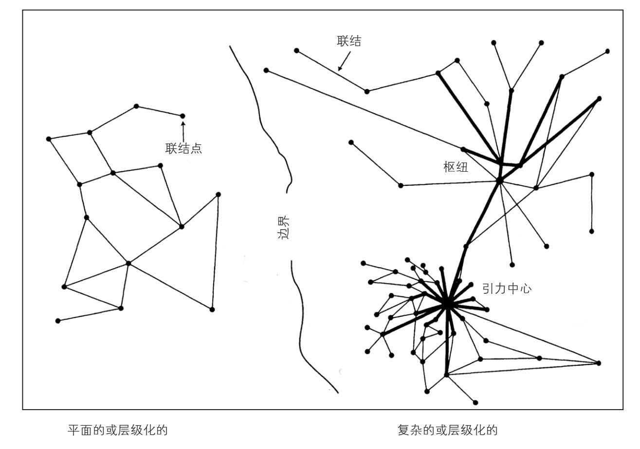 大型交换网络具有与众不同的地域性“构造”。也许回到社会引力定律的比喻更加容易理解这个问题。在这个想象的定律之下,人类的共同体对于其他共同体,以及其中的商品、观念和民族总是产生一种吸引力。随着人类共同体的发展,这个规律开始更加强有力地发生作用。大致而言(与牛顿的定律有着惊人的相似之处),共同体之间巨大的引力与共同体的规模以及共同体之间的距离成正比。