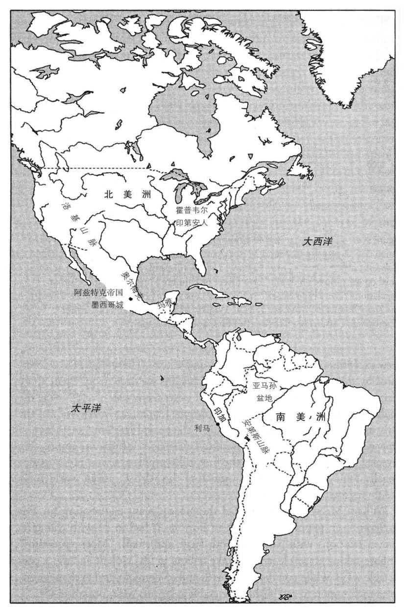 在美洲,国家体系也有类似的发展趋势,只是在时间上相差了大约2000年。与公元前第三个千年苏美尔或埃及规模相似的农耕文明出现于公元前第二个千年晚期或者公元前第一个千年早期。阿黑门尼德王朝首次打破的政治界限,直到欧洲人到来的时候才刚刚在美洲达到。在公元1500年,印加统治着大约2平方兆米的疆土,而阿兹特克帝国更小,仅有大约0.22平方兆米。[45]