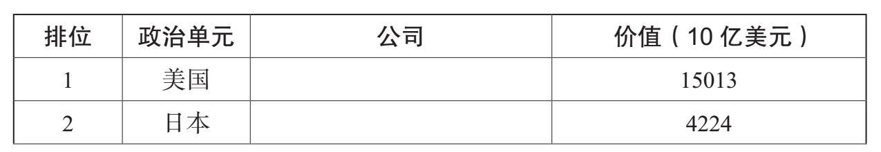 表14.2 按照市场价值排列的经济体(2000年1月)