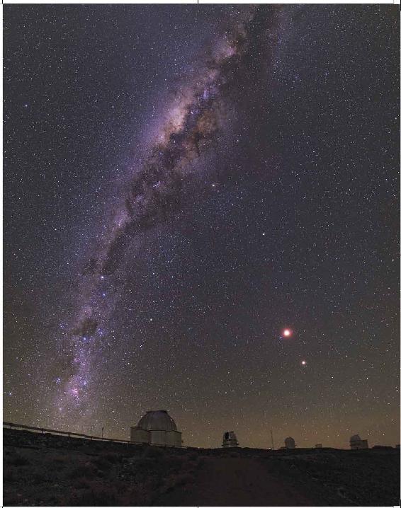 接着是这次旅行的第三站,也就是下图中那个横跨夜空的棒状结构,银河系。如果说星际近邻世界是太阳居住的社区,那么银河系就是太阳居住的王国。就在100年前,人们还普遍相信银河系就是宇宙的全部。但今天,我们的宇宙观已经发生了翻天覆地的变化,这种转变要从一场辩论说起。