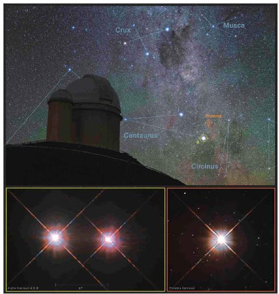 半人马座α是离我们最近(大概有4.2光年)的恒星系统。它由三颗恒星组成:半人马座αA星、半人马座αB星和比邻星。不过,和刘慈欣笔下那个危机四伏的三体世界不同,真实的半人马座α世界并没有那么凶险莫测。这是因为半人马座α三合星的运动情况其实更像一个两星系统。半人马座αA星和B星是两颗与太阳非常相似的恒星,彼此仅相距十几个天文单位;而质量仅有太阳12%的比邻星,与它们相距13000个天文单位,相当于0.21光年。因此,实际情况是AB双星先构成一个彼此绕转的两体系统,然后这个两体系统再与比邻星构成一个更大的两体系统。与三体系统不同,两体系统的运动规律是可以准确预测的。所以要是真有三体人,他们也不会整天活在末日将至的惶恐中。