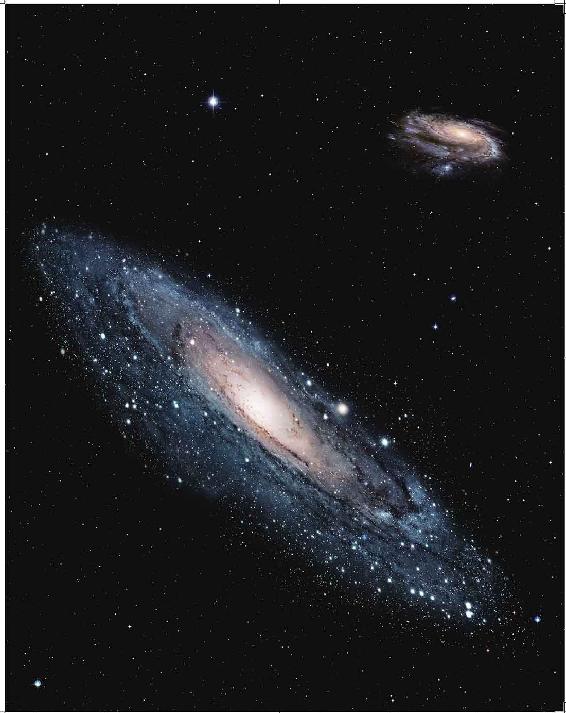 再下来是这次旅行的第四站,我们终于飞出了银河系,来到了星系际空间。自从哈勃发现仙女座星云其实也是一个独立的星系后,天文学家们又陆陆续续地在银河系周围发现了大约50个其他星系。在这些星系中,银河系是排名第二的大块头,仅次于与它相距250万光年的仙女座星系。更有意思的是,就像不同的国家可以结盟一样,这50个星系也在引力的作用下组成了一个大型的联盟,叫本星系团。这个本星系团的直径有600多万光年。银河系和仙女座星系是本星系团的两大盟主,其他那些小星系都得绕着它俩旋转。