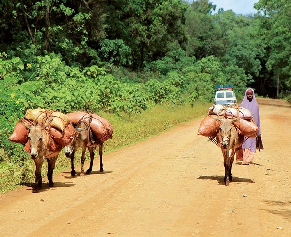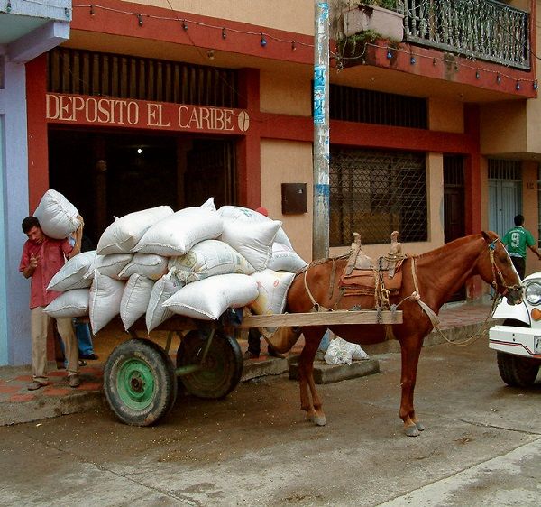 在大量贫穷的咖啡种植区,每一项工作都要付出艰辛的劳动。为了将带壳豆运到仓库,种植户需要动用所有的运输方式(包括人力)。