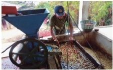 “项目刚开始时,研究员发现我们这里的咖啡树是波旁种,一种古老、风味很棒的品种。但是每户在收获后会自行处理咖啡,给质量带来了变数和不利的影响。因此,项目方建立了一个处理厂,种植户可以把咖啡果送过去处理,那里的处理标准高而且水平稳定。这为咖啡质量带来了质的变化。