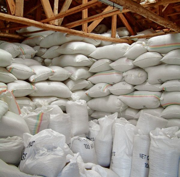 卢旺达仓库里放置的晾干的带壳咖啡豆。