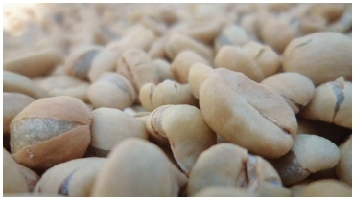 咖啡豆经过脱壳去掉羊皮层。