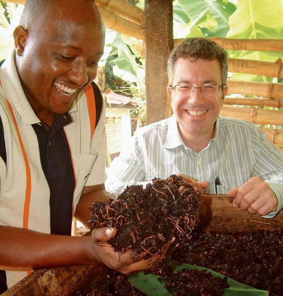 (下中)史蒂文在卢旺达胡叶的一个蚯蚓农场,这里用脱胶后剩下的咖啡果堆肥,成为一种有机肥料,肥料还有丰富的营养物质,肥效长而稳定,能极大地促进咖啡的生长。