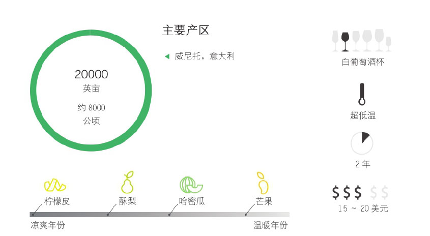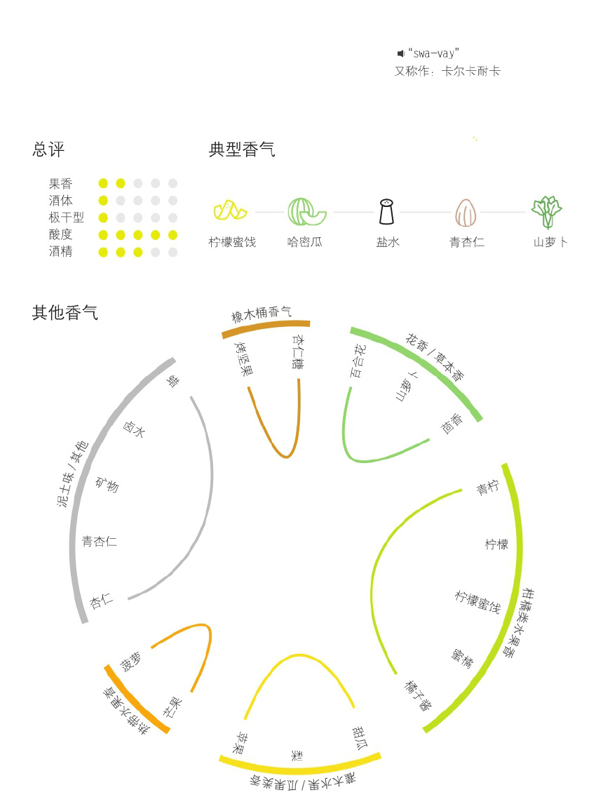 年份短的苏瓦韦葡萄酒有哈密瓜、盐水、橘子酱和白桃的味道,并经常伴有轻微的青杏仁味。