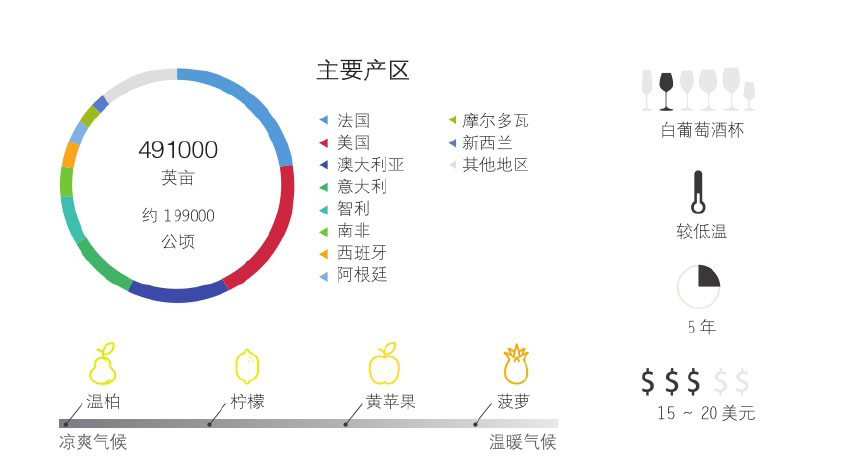 橡木桶陈化 饱满&奶油味美国加利福尼亚州、智利、澳大利亚、阿根廷、西班牙,以及法国伯恩丘、勃艮第。