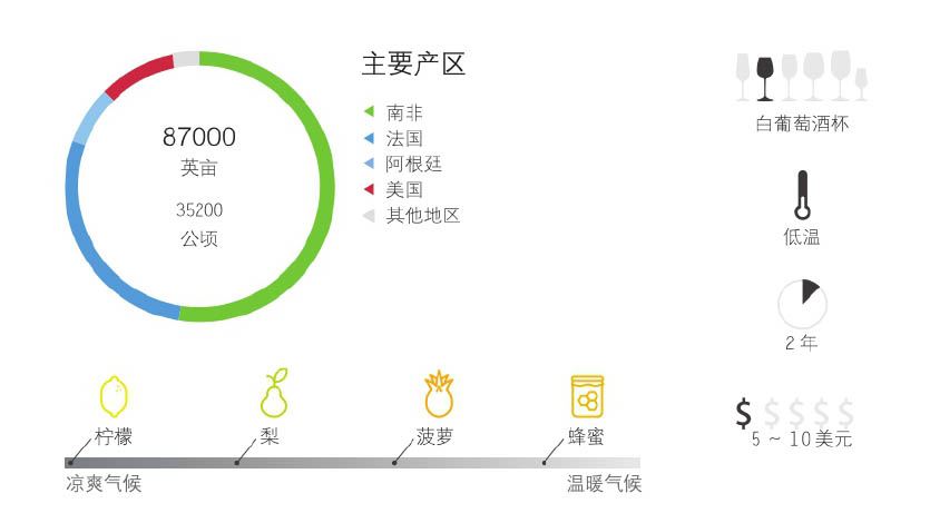 卢瓦尔河谷出产的标有“Sec”,以及南非低等售价的白诗南干型酒有青柠和龙蒿叶的味道。