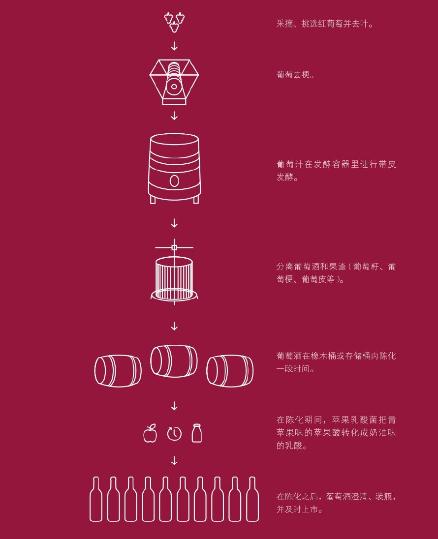 MEDIUM-BODIED RED WINE巴贝拉 蒙特布查诺 品丽珠 黑曼罗 佳丽酿 罗纳河谷/GSM混酿 佳美娜 桑娇维塞 歌海娜 瓦坡里切拉混酿 门西亚 仙粉黛 梅洛 中度酒体红葡萄酒通常是被用作“配餐酒”,因为它们能够极好地搭配许多不同种类的食物。一般而言,中度酒体红葡萄酒最显著的特点是具有浓郁的红色水果风味。