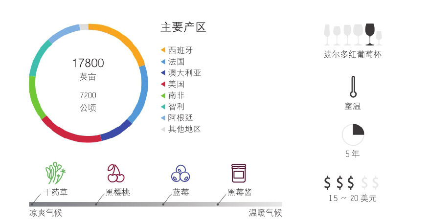 如果喜欢单一味而多葡萄酒,可以在美国华盛顿州、加利福尼亚州、西班牙和澳大利亚寻找,因为这些地区日照充足,葡萄成熟较快。