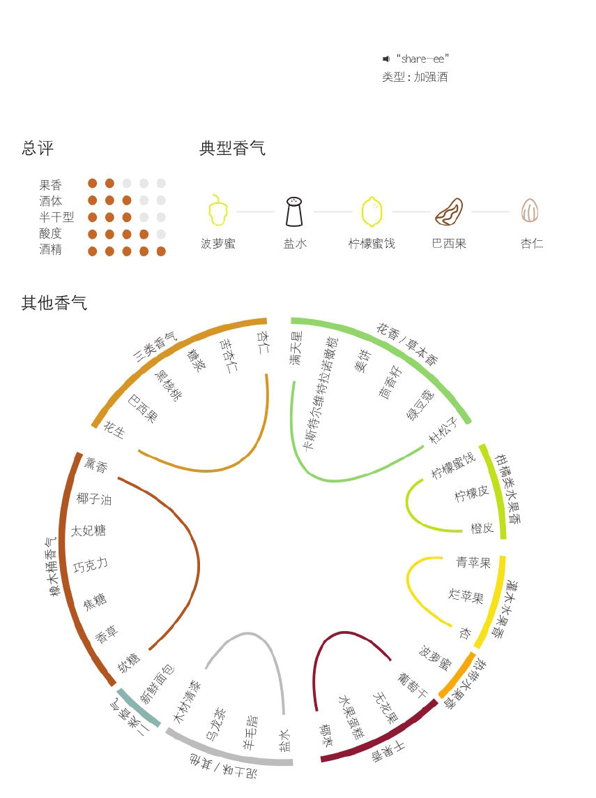 酒体介于菲诺和欧罗索之间,具有轻微坚果风味。