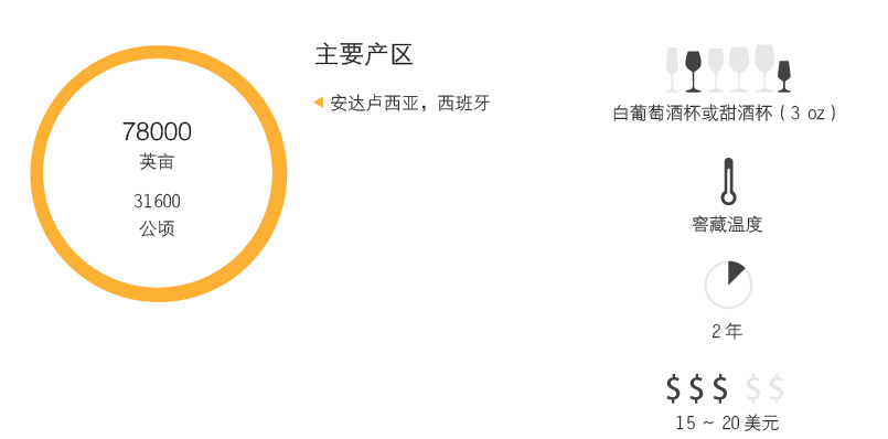 甜度高,由亚历山大麝香葡萄酿造,具有焦糖风味。