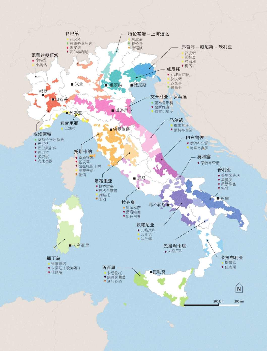 意大利以出产浓缩质朴的葡萄酒而闻名,根据不同气候,可分为三个区域。