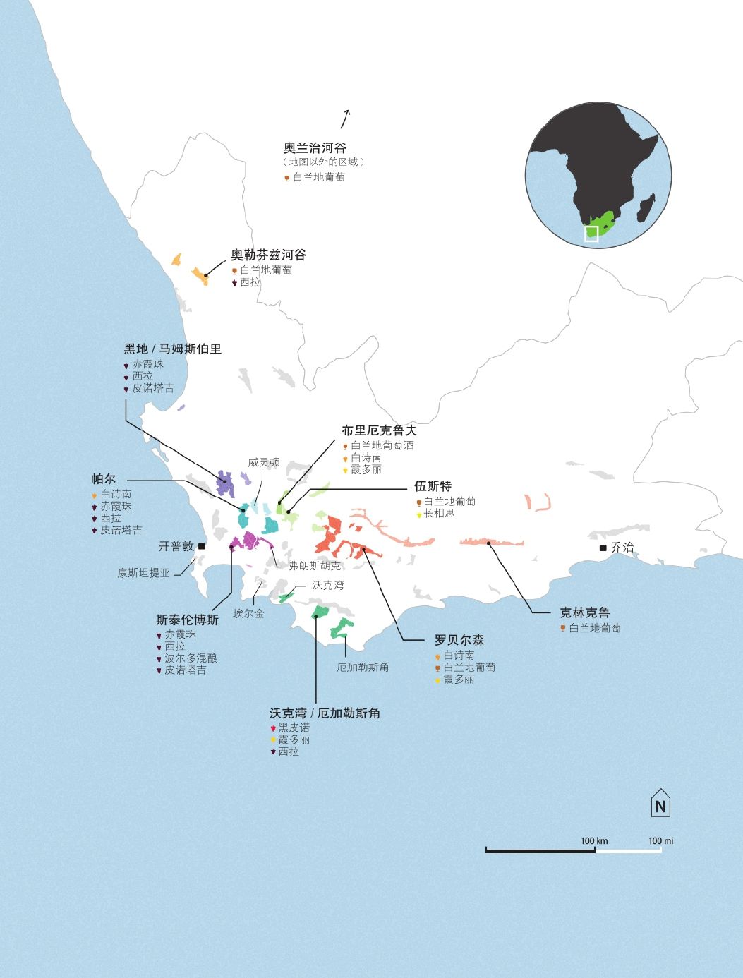 南非位于炎热气候地区,以出产酒体饱满的可口型红葡萄酒和浓郁果香型白葡萄酒而闻名。南非大量葡萄都用来酿造白兰地。