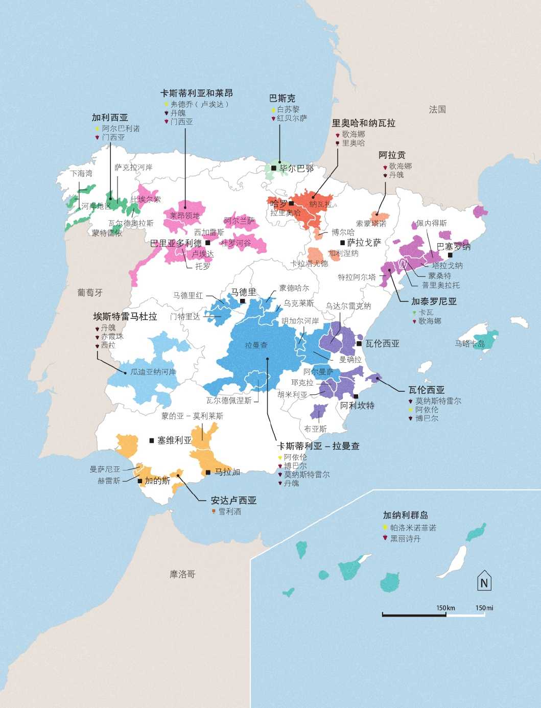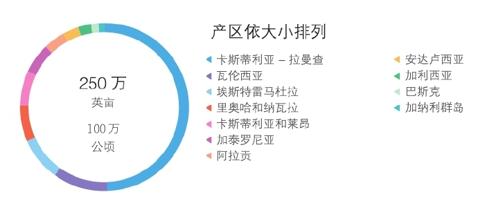 西班牙以出产酒体饱满的果香型葡萄酒而闻名,该酒具有轻微的黏土味。按气候,西班牙可分为三个区域。