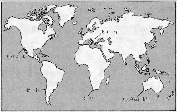 这些就是新月沃地的植物群向最早的农民提供的一些有利条件:它包括适于驯化的数量多得出奇的野生植物。然而,新月沃地的地中海气候带向西延伸,经过南欧和西北非的广大地区。世界上还有4个类似地中海气候带的地区:加利福尼亚、智利、澳大利亚西南部和南非(图8.2)。然而,这些另外的地中海气候带不但无法赶上新月沃地而成为早期的出现粮食生产的地方;它们也根本没有产生过本地的农业。欧亚大陆西部的这种特有的地中海气候带究竟具有什么样的有利条件呢?