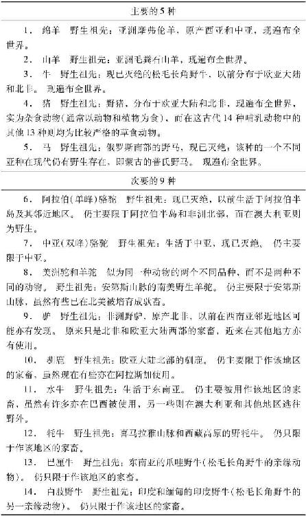 表9.1 古代14种大型食草类驯化哺乳动物