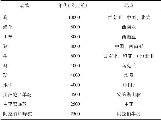 表9.3 大型哺乳动物驯化得到证明的最早的大致年代