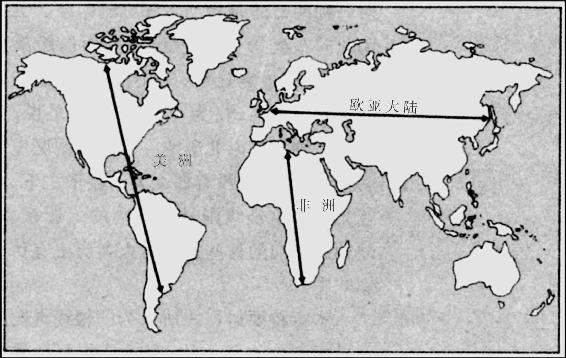 请在下页的世界地图(图10.1)上比较一下各大陆的形状和轴线走向。你会对一种明显的差异产生深刻的印象。美洲南北向距离(9000英里)比东西向距离大得多:东西最宽处只有3000英里,最窄处在巴拿马地峡,仅为40英里。就是说,美洲的主轴线是南北向的。非洲的情况也是一样,只是程度没有那么大。相形之下,欧亚大陆的主轴线则是东西向的。那么,大陆轴线走向的这些差异对人类历史有什么影响呢?