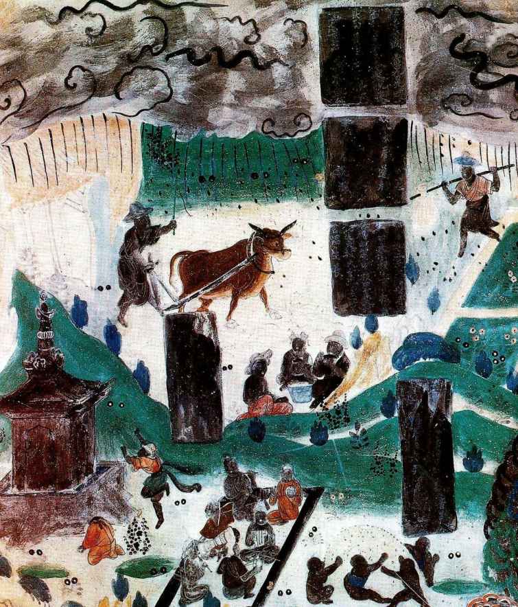 莫高窟第23窟唐代壁画《雨中耕作图》