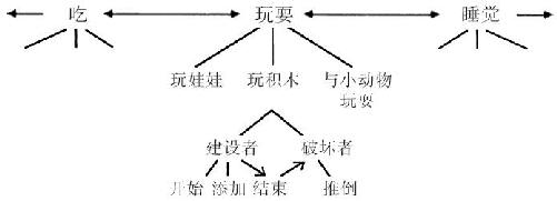 在最开始时又是什么唤起了“玩积木”呢?可能是某个更高层级的智能体,“玩耍”,先被激活了。然后,在“玩耍”内部,尽管有“玩娃娃”和“与小动物玩耍”这两个竞争者,最终还是“玩积木”掌握了控制权。不过就算是它们的主管上司“玩耍”本身,也必须和“吃”和“睡觉”这样的其他高级智能组竞争。毕竟,孩子玩耍不是一个孤立事件,它总是和现实生活中许多其他事情一起发生。无论我们选择做哪件事,总是在同时还有其他事情想做。