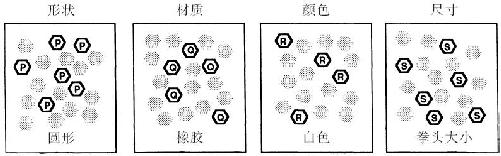 我们通过融合部分旧理念来产生新理念,也就是说同时在思维中保持多于一种的理念。让我们先用非常简化的方式想象一下思维由许多不同的“部门”构成,每个部门都在参与一项不同的活动,比如视觉、移动、语言,等等。即使在更小的规模上,思维也是以这种模式形成,所以就算关于最普通的物体的思想也是由更小的智能组产生的更小的思维组成的。想想一个白色橡胶小球可以像下面这样激活一些部门: