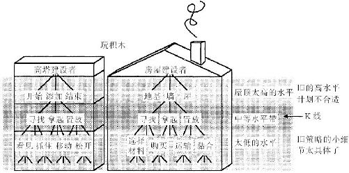 水平带的概念不仅可以用来描述物体,还可以用来描述那些我们用来达成目标的程序和活动的记忆,也就是那些我们重新创建的曾经帮我们解决过问题的思维状态。我们要解决的问题随着时间的变化而不同,所以必须让过去的记忆适应现在的目标。为了看看水平带理论如何有助于实现这一点,让我们再回过头看看玩积木这件事。不过这一次我们的孩子长大且变成熟一些了,他想建造一幢真正的房子。旧的建筑智能体社会中哪些智能体能用来解决这些新问题呢?