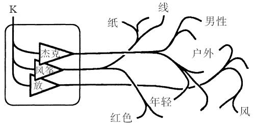 设想当你意识到杰克正在放风筝,这一定会涉及有关“杰克”“放”和“风筝”的三条K线,它们都是在以前就形成了,在看见杰克放风筝的时候就被唤醒了。当这三条K线被激活时,每条都会轮流激活几百或几千个智能体。(看见那个场景时,你的思维状态由两部分组合而来,一部分是由你的感觉直接唤醒的智能体,另一部分是由你的再认间接唤醒的智能体。)现在,左边的记忆方案需要在所有那些智能体和新K线之间有数量巨大的联结,而右边的方案只需要新K线与三条旧K线相联结,就能获得差不多的效果!但是当你在之后的某一天再次激活那条K线时,它就会唤醒杰克、放和风筝三条同样的K线以及其他包含在内的再认过程。于是,你会重新体验许多和以前一样的再认过程。在这种情况下,你的感觉和行为都会像重新回到了同样的情境中一样。