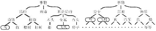 这两种等级以不同的方式把事物分开。鸟和飞机在其中一边关系很近,但在另一边就离得很远。哪一种分类是正确的呢?愚蠢的问题!那得看你要用它来干什么。左边的那种分类对生物学家更有用,右边的分类则对猎人更有用。一只陶瓷鸭子你怎么分类,一个可爱的装饰玩具?它是一种鸟吗?它是一种动物吗?还是一堆没有生命的黏土?争论这件事没有意义:“那不是一只鸟!”“不,那就是一只鸟,同时也是一件瓷器。”实际上,我们常常同时使用两种或更多的分类方法。举例而言,一个体贴的孩子可能会假装把它当成一只鸭子来玩耍,同时也会小心翼翼地把它当作一件精致的瓷器来对待。