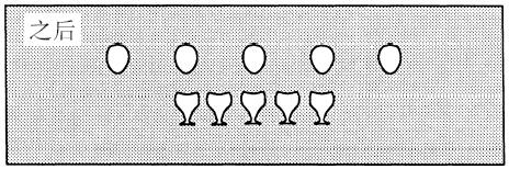 然后他把鸡蛋之间的距离分开了一些(就是在孩子们面前分开的)然后又问是鸡蛋多还是鸡蛋杯多。