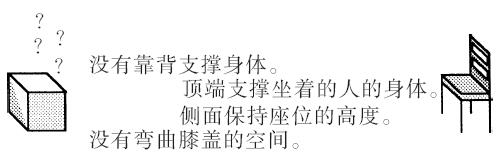 包含这种结构的统一框架可以变得非常强大。举例而言,这种关于结构、舒适和姿势之间关系的知识可以用来理解什么时候盒子可以当椅子用:那就是,只有当它高度合适,坐它的人也不需要靠背或弯曲膝盖的空间的时候。当然,这种聪明的推理需要特殊的思维技能,利用这种技能可以重新描述或者“重构”盒子和椅子的描述,这样尽管它们之间有差异,也能“匹配”到一起。除非我们学会让旧描述适应新环境,否则我们的知识只能应用于我们学会这些知识时的环境。而这几乎是不可能实现的,因为环境从来没有一点儿都不变地重现过。