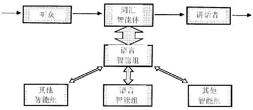 然而从另一个角度来说,语言似乎在意识的工作中发挥着一定的作用。我怀疑这是因为语言智能组在我们的思维方式中承担特殊的任务,它们对其他智能组中的记忆系统有很强的控制能力,因此对这些记忆系统中所包含的大量知识也有控制作用。但语言只是思维的一部分,我们有时会用词汇来思考,有时却不会。我们不使用词汇的时候,是用什么来思考的呢?利用词汇工作的智能体又如何与不用词汇的智能体进行交流呢?既然没人知道,我们只能建立一个理论。首先来想象一下,语言系统被划分为三个区域: