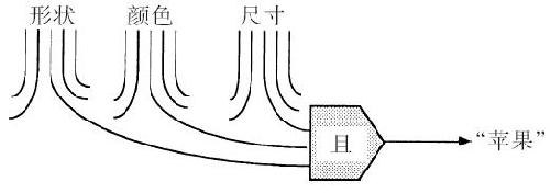 当我们看到一个苹果,我们怎么知道这是一个苹果?我们是怎么认出一个朋友的?甚至我们怎么知道看到的是一个人呢?我们如何识别事物?识别事物最简单的方式就是确认它有特定的属性。在多数情况下,要识别出一个苹果,寻找红色且是圆形且是苹果大小的事物可能就足够了。为了做到这一点,我们需要一种智能体来检测是否所有三个条件同时出现。最简单的形式就是只要所有三种输入信息都处于活动状态,那么这个智能体就被激活。
