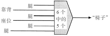 我们可以使用“且”智能体来识别很多东西,但这种理念也有严重的局限性。假设你试图通过这种方式识别一把椅子,如果你坚持寻找“四条腿且有一个座位且有一个靠背”,那么这个任务通常会失败。你很少能同时看到椅子的全部四条腿,通常至少有一条腿在视线之外。此外,如果有人坐在椅子上,你常常根本无法看到座位。在现实生活中,如果一个识别方案是以绝对完美的证据为基础,那么它并不总是能起作用。一个更明智的方案不会要求椅子的每个特征都能被看到,相反,它会在椅子出现时“权衡证据的重要性”。举例而言,我们让椅子智能体在看到椅子6个特征中的5个或以上时就激活:
