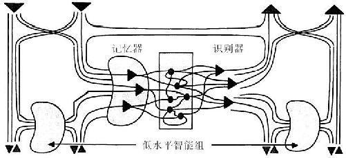 这幅智能组组织方式的草图是过度简化了的。每个智能体,无论是一个框架、一条K线还是其他什么的,当它需要活动的时候,一定拥有某种机器用于学习,这可能比简单地识别某些特征是否出现要求更高。举例而言,要认出一个客体是一辆汽车,仅仅知道它包含某些类型的组件,比如车体、车轮和牌照是不够的,框架还必须能识别出这些组件是以适当的关系组合在一起的,比如轮胎恰当地与车体连接。人工智能领域的工作者已经实验过许多制作框架识别器的方式,但这个领域仍然处于起步阶段。高水平智能组的识别器所包含的机制可能和差异发动机的机制一样复杂,这样才能与真实场景中的关系描述相匹配。